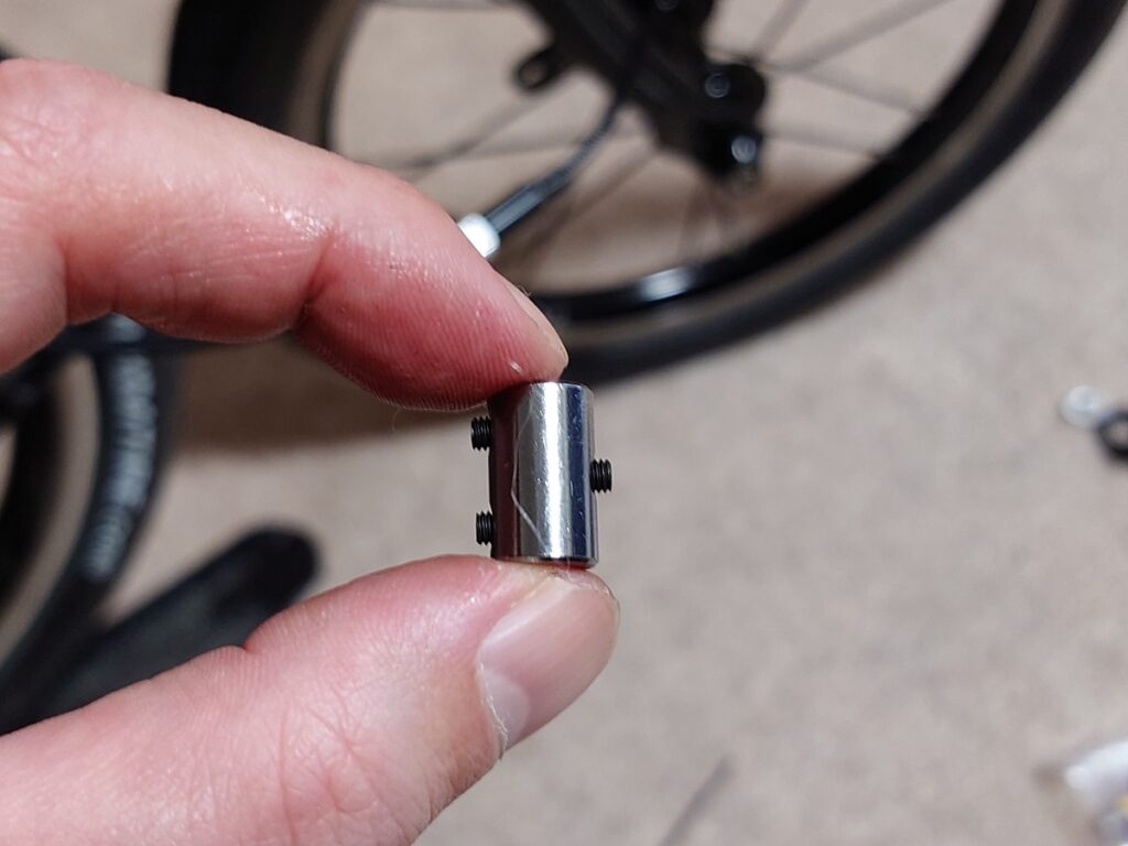ワイヤー固定側はワイヤーの接続や輪っかを作る為のサーキュラースリーブと呼ばれるを使用。細いイモネジ1本だと流石に無理だろうという事で、チドリ状に三本配置されている物を選択。