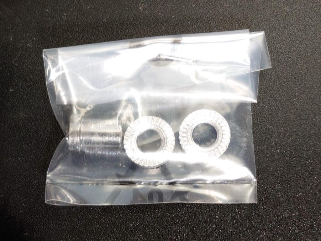 付属品は滑り止めの付いている厚めのワッシャ二枚とフレームの内部に入る込むタイプの長細いナットが1本