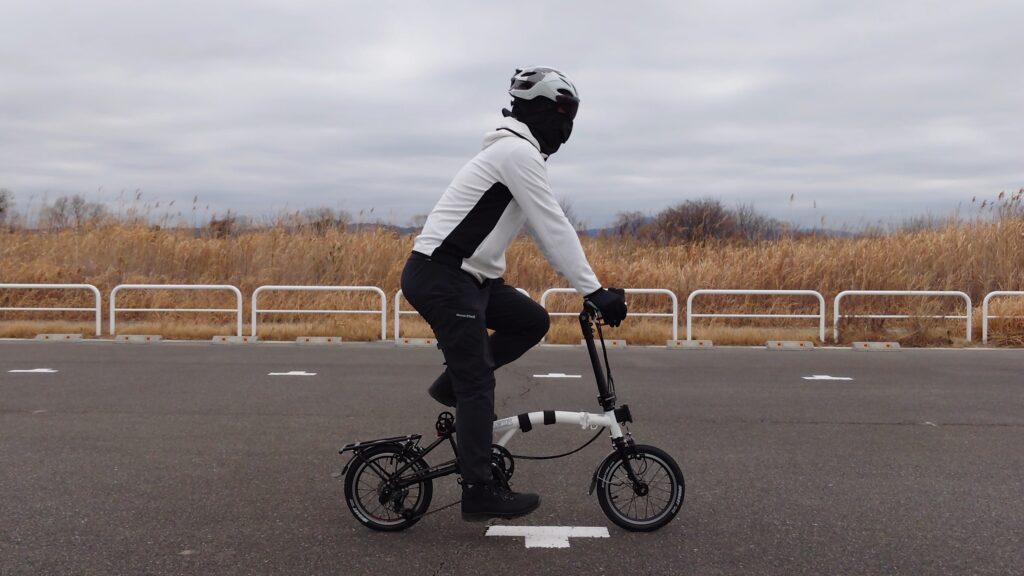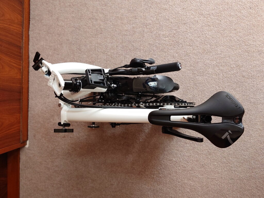 一応、このハンドル構成で突き出し量を抑えて、折り畳み時の厚みも抑えられた感じです。