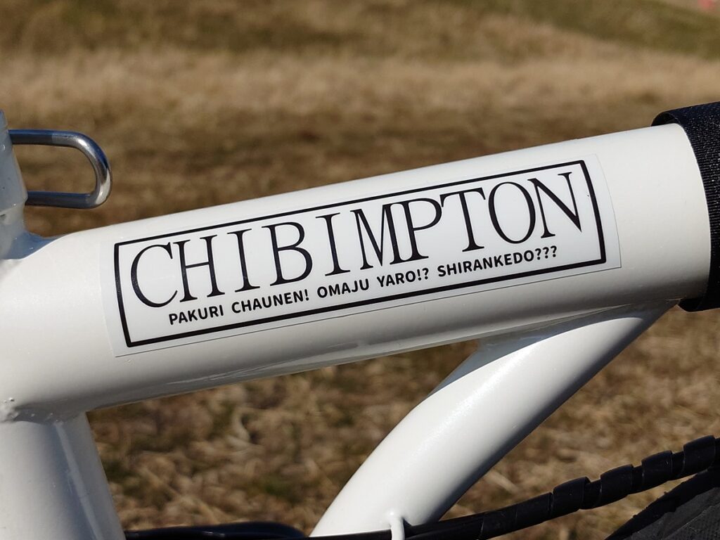 このタイミングで剥がした銘板代わりのステッカーを作りました。BOB3改め”チビンプトン(CHIBIMPTON)”です。ちなみに命名の元ネタは、X(Twitter)上で活動されているウサクサ氏(@x412xa) が言っているのをパk・・・オマージュ(?)しているので、私の発案ではありません。